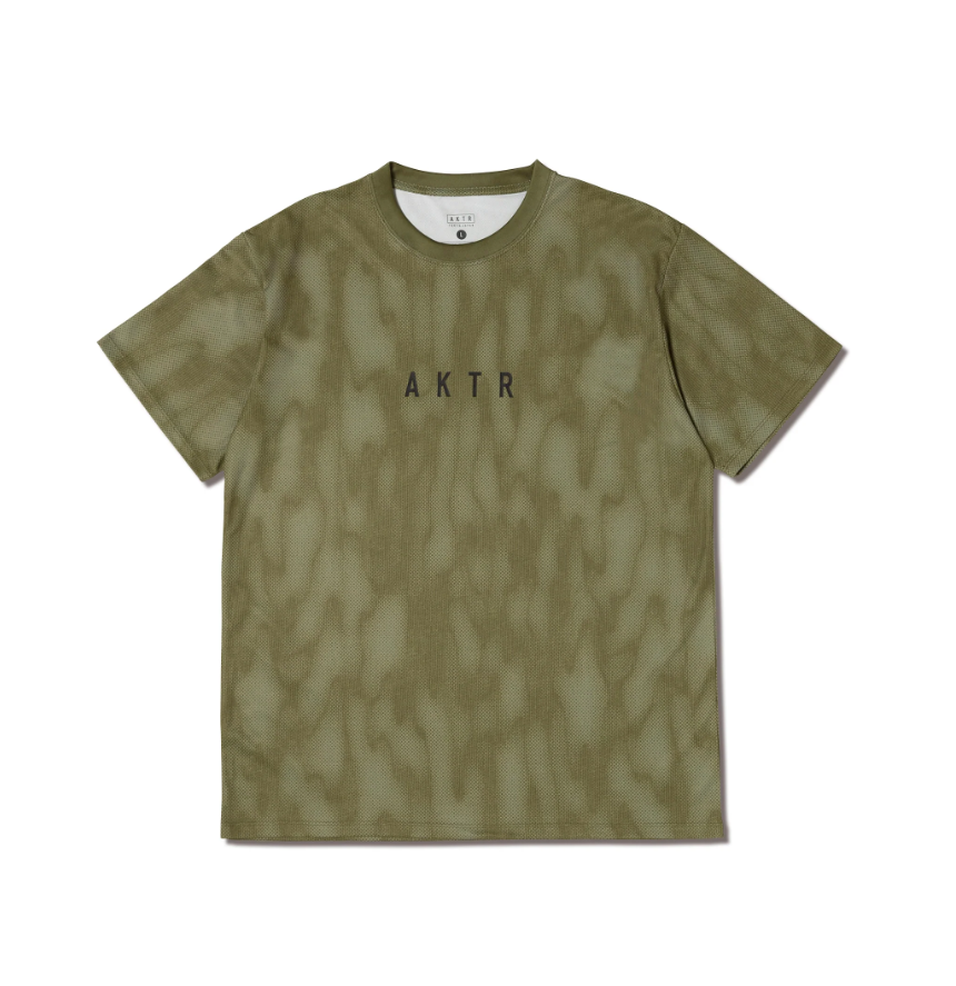 design:AKTRがシーズン毎にアップデートする総柄シリーズの半袖TEEシャツ。今季はコート上の熱や流れ落ちる汗をイメージしたカモフラージュ柄をデザイン。胸にはAKTRロゴがプリントされている。