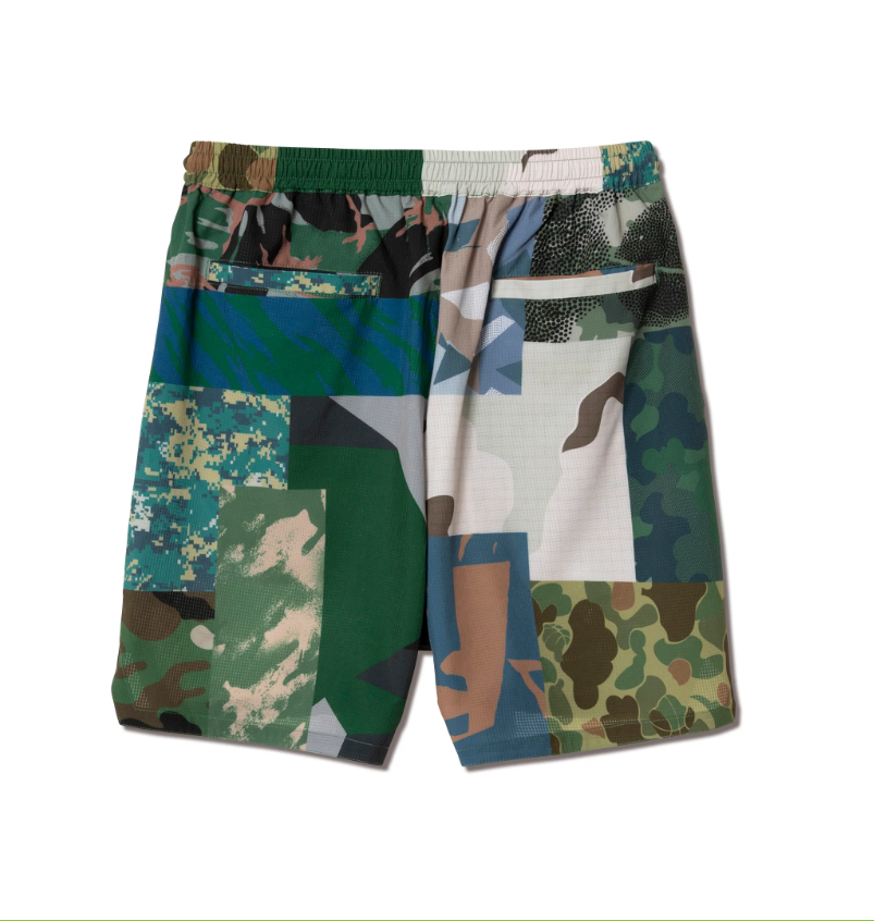 design:AKTRが今までデザインしたカモフラージュ柄を、パッチワーク風に組み合わせてデザインしたショーツ。シルエットはAKTRのショーツの中では股下を一番短く設定し、横巾を通常よりも広くすることにより、動きやすさを考慮したバランスのとれたワイドシルエットになっている。